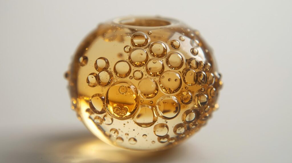 - 気泡の形が不規則でも、ガラスを混ぜる際についた「流れ模様(脈理)」が見えることがある。