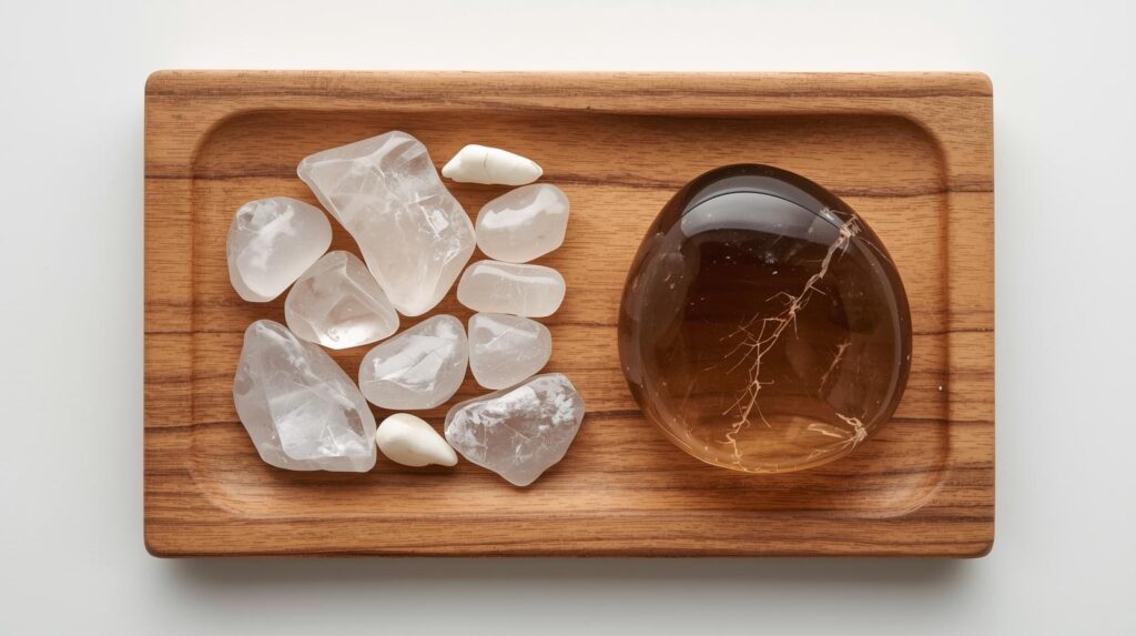 - 水晶クラスター・さざれ: 水晶の浄化作用で、モリオンを休ませ、エネルギーをリチャージさせます。ブレスレットの「寝床」として最適です。