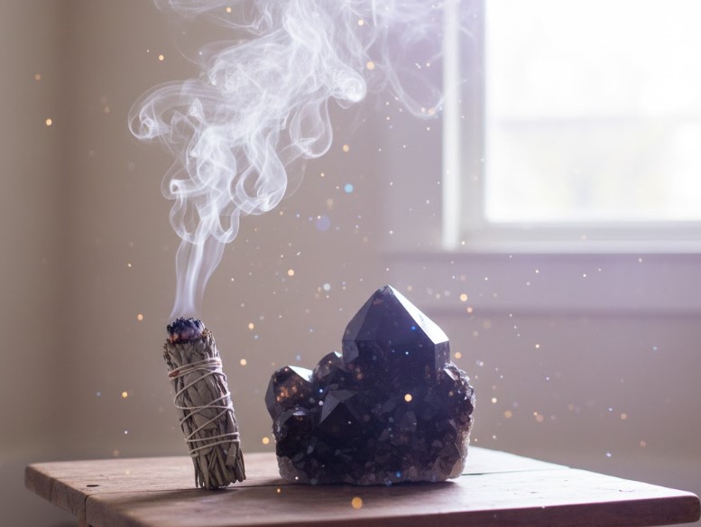 • セージ(持ち運べない大きな石に最適): ホワイトセージの煙で石を燻す(スマッジング)方法です。石だけでなく、その空間ごと浄化できるため、置き石に最適です。