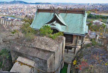 山裾から続く参道は階段状になっており、上に登ると浮石を見下ろせる展望スポットもあります。晴天時には高砂の街並みや明石海峡大橋まで一望できるため、登拝の達成感とともに壮観な景色を楽しむことができます。