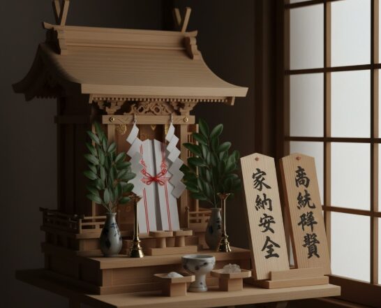 湊川神社で受けた木札は、左側または神棚下段に安置することで、他の神々と調和する配置になります。