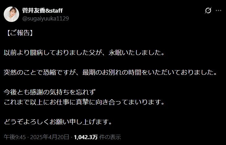 2026年現在・2025年の4月に父上はすでに逝去されている…